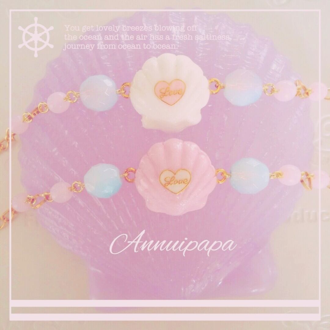 ぷっくりシェルの可愛いブレスレットです。