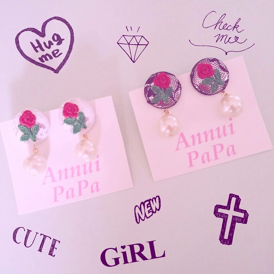No. 534 レース&ローズピアス・イヤリング(2カラー)
