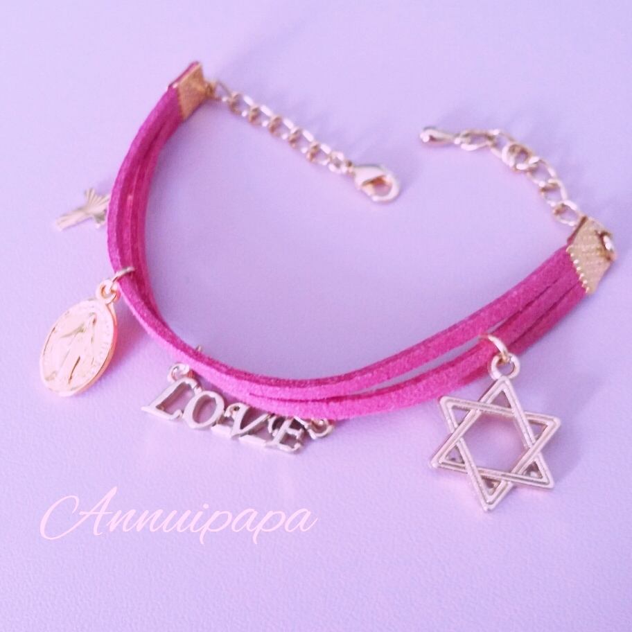 スエードの紐を3連にしたブレスレットです。charmはカラーによって異なります。charmは固定してないので好きな位置に移動してつけてください。