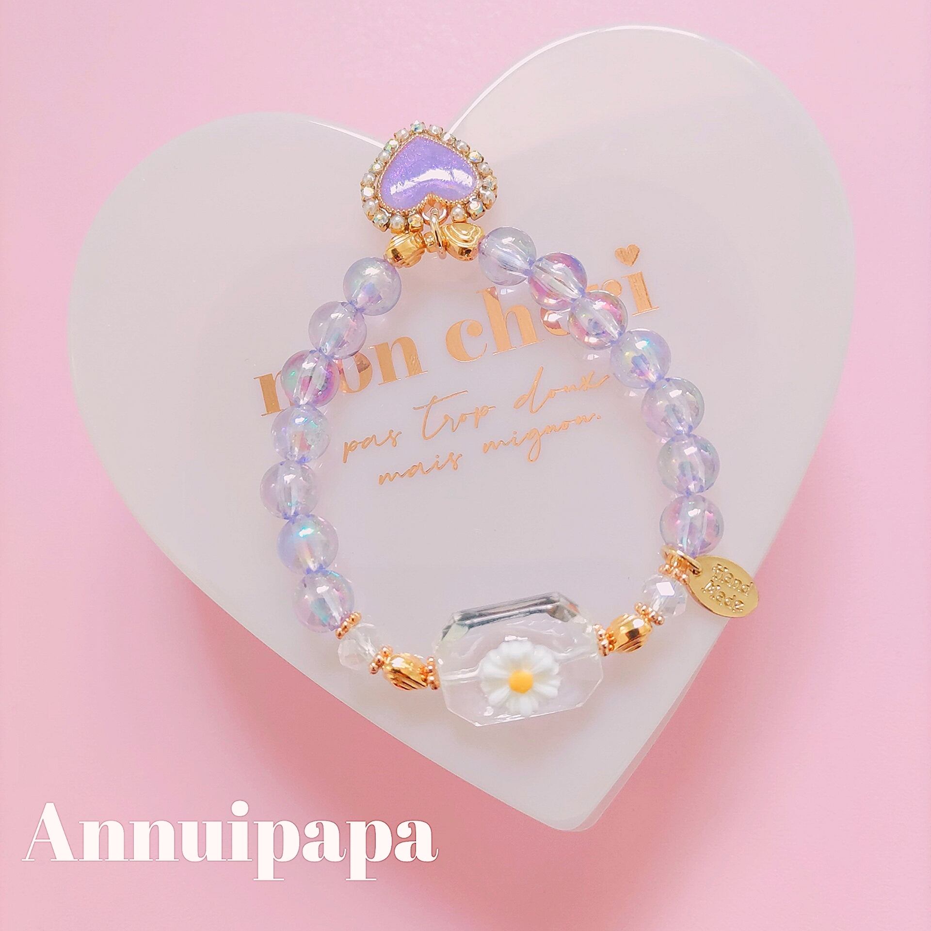 ハートのチャームは4枚目の色に近いです♡(パステルパープル)