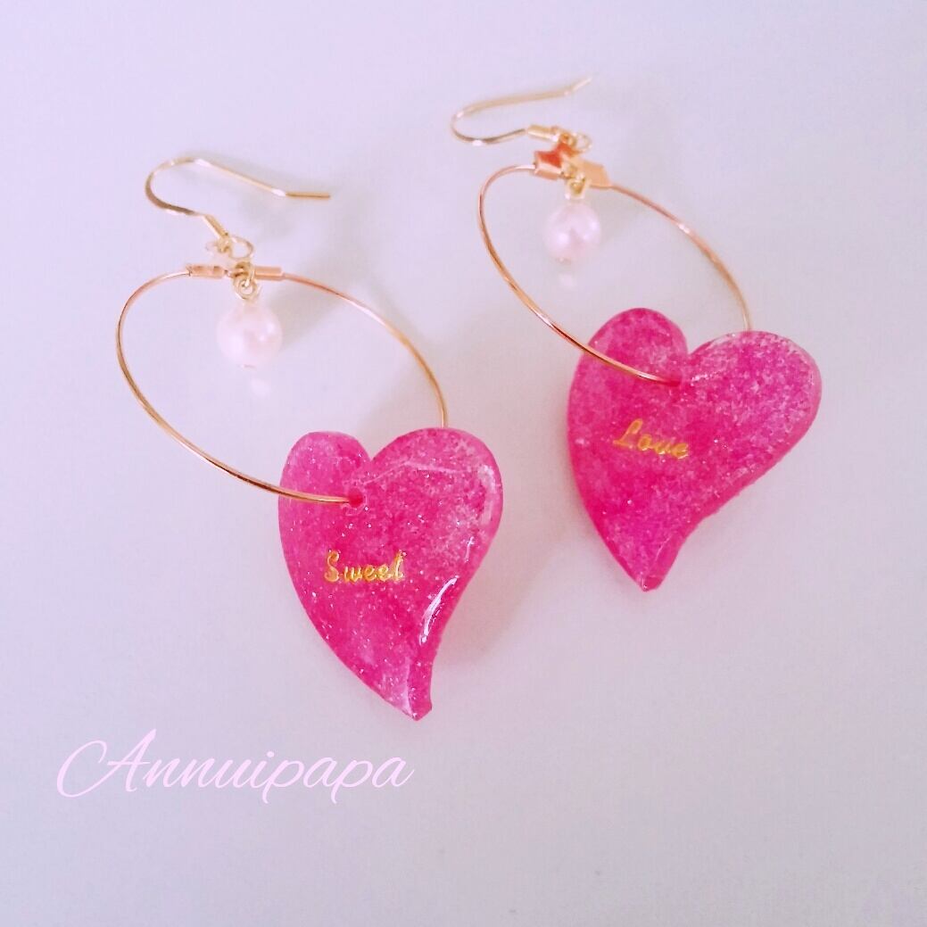 No. 667 ピンクラメハートHoopピアス・イヤリング