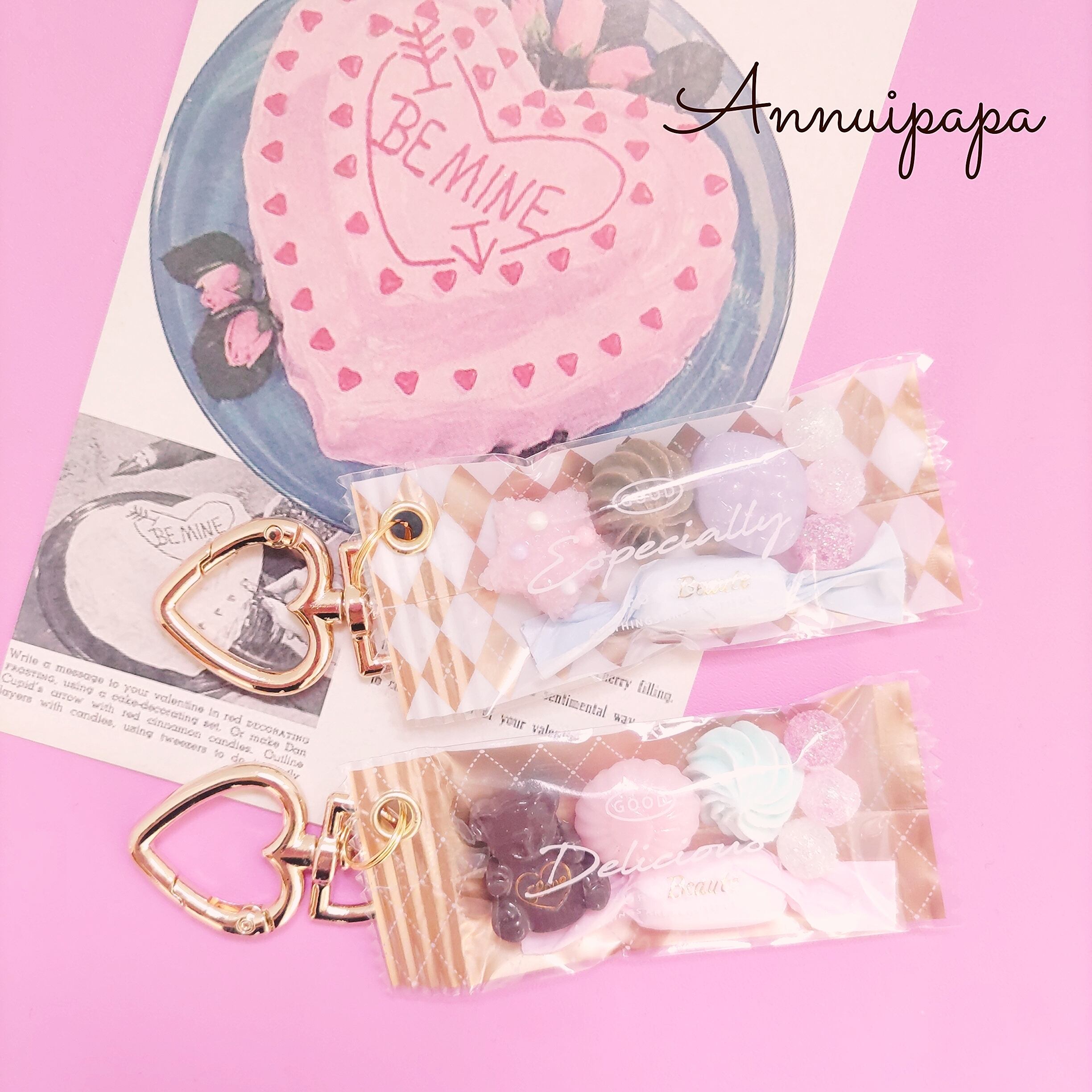 チョコレート、ラムネ、キャンディーなど、甘いフレーバーがぎゅっと詰まったデザートをイメージしたアイテム。バッグにつけるだけで、華やかさと個性がぐっとアップします。