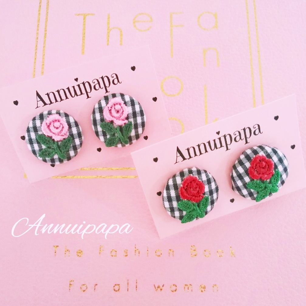 No. 706 ギンガムチェックローズピアス・イヤリング(2カラー)